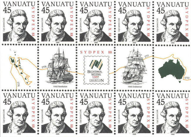 In 1988 Vanuatu issued a souvenir sheet featuring ten
